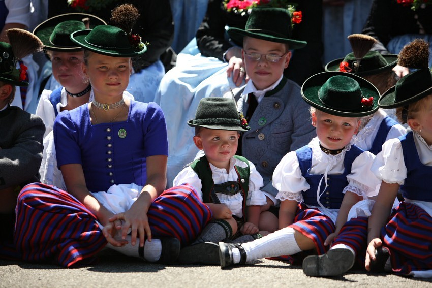Die Bayrischzeller Teilnehmer an der Steubenparade 1979 mit ihrer Fahne und mit der Fahnenabordnung der amerikanischen Trachtenfreunde vor dem Kapitol in Washington